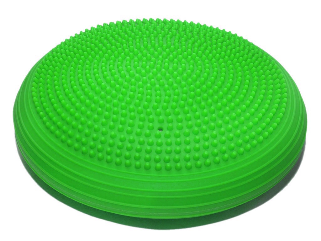 Балансировочная подушка в форме диска предназначена для массажа, а так же тренировки баланса, гибкости, координации. Одна поверхность массажная - выполнена с выступающими мягкими шипами, вторая – с выступающими концентрическими кольцами. В комплект насос не входит.