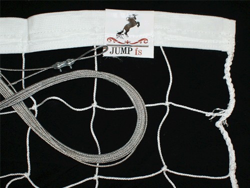 Сетка для волейбола шириной 1 метр и длиной 9,5 метров состоит из черных ячеек в форме квадрата. Верхний край сетки обшивается горизонтальной лентой шириной 5 см (сложенная вдвое белая парусина, прошитая по всей длине). На концах ленты имеются отверстия, через которые пропущен шнур, привязывающий ленту к стойкам для ее натяжения. Внутри ленты находится гибкий трос для крепления сетки к стойкам и натяжения. Внизу сетки (без горизонтальной ленты) находится шнур, пропущенный через ячейки, для крепления ее к стойкам и натяжения.