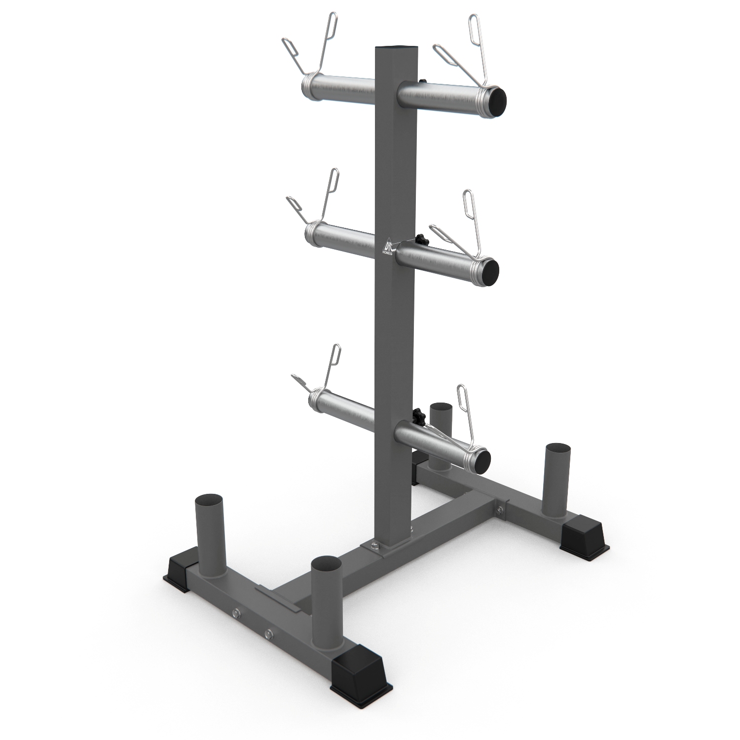 Напольная компактная стойка удобно размещается в любом помещении: как в отдельно углу, так и между другими тренажерами. Для дополнительной устойчивости конструкции соблюдайте порядок размещения снарядов: сверху вниз, от самых легких до самых тяжелых и объемных.