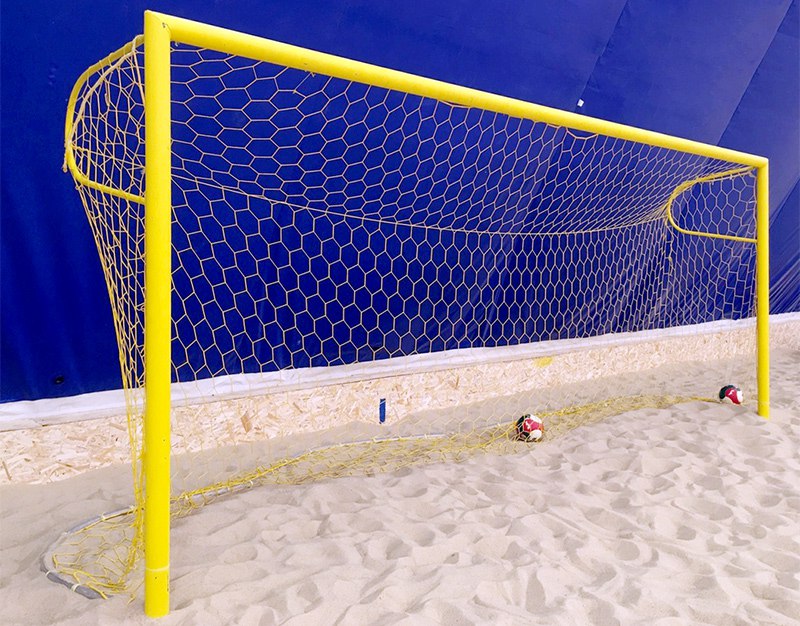 Особое внимание уделено защитным свойствам: порошковая окраска в ярко-желтый цвет не только гарантирует отличную видимость на поле, но и создает надежный барьер против коррозии и абразивного воздействия песка. Разборная конструкция весом 170 кг за пару позволяет эффективно решать вопросы транспортировки и сезонного хранения оборудования.