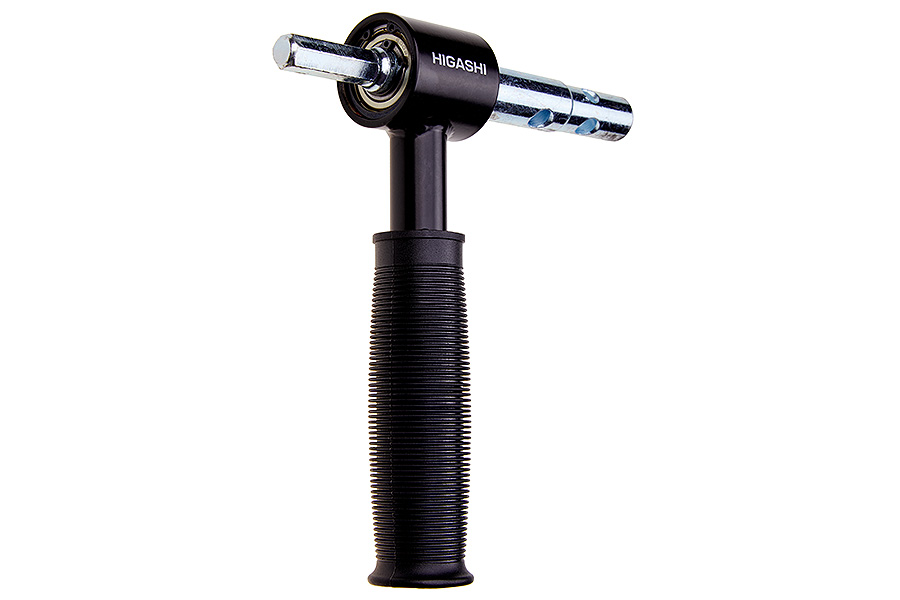 Адаптер с ручкой к шуруповерту для шнеков HIGASHI COBRA имеет в своей конструкции два шарикоподшипника, которые увеличивают ресурс работы адаптера, обеспечивая «мягкое» бурение льда. Удобная резиновая ручка изделия позволяет максимально комфортно удерживать шнек с шуруповертом, снимает вес шнека с редуктора шуруповерта, что позволяет избежать его разрушения при вынимании шнека с ледовой крошкой из лунки. Также адаптер позволяет не потерять шнек при бурении льда при самораскручивании патрона шуруповерта. Для исключения или минимизации травм при заклинивании шнека во время бурения льда, рекомендуется держать шуруповерт в левой руке, а ручку адаптера в правой.