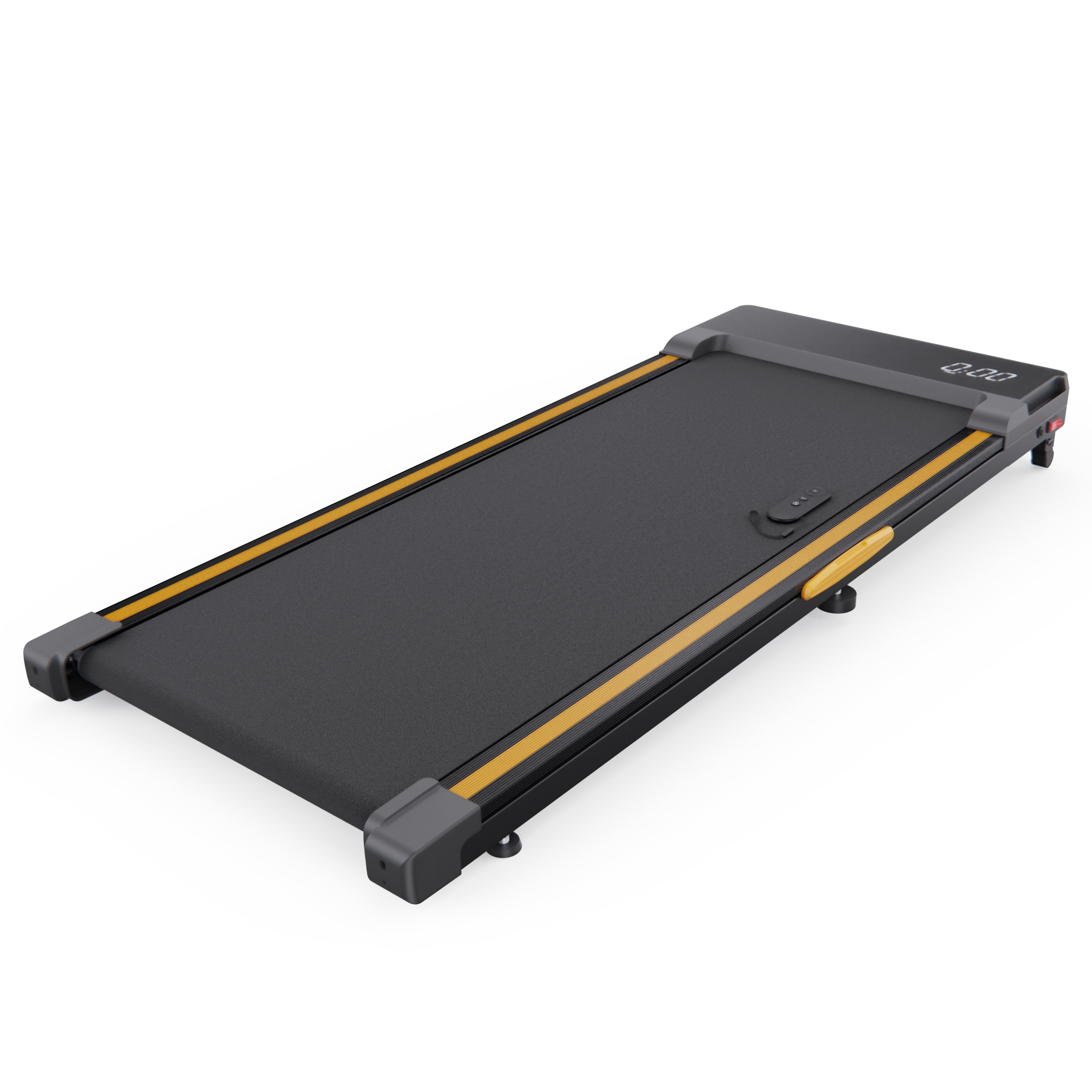 На встроенном LED-дисплее отображаются основные параметры тренировки: время, скорость, пройденная дистанция и количество сожжённых калорий, что позволяет контролировать процесс занятий. Управление дорожкой осуществляется с помощью пульта дистанционного управления, с которого можно включать и выключать питание, а также регулировать скорость без остановки тренировки.