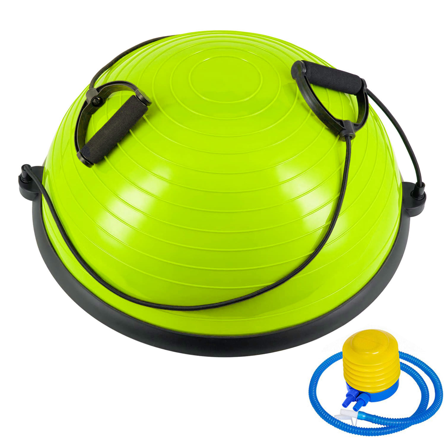 Комплектация: насос ножной, ручки с резиновыми эспандерами для дополнительных упражнений.