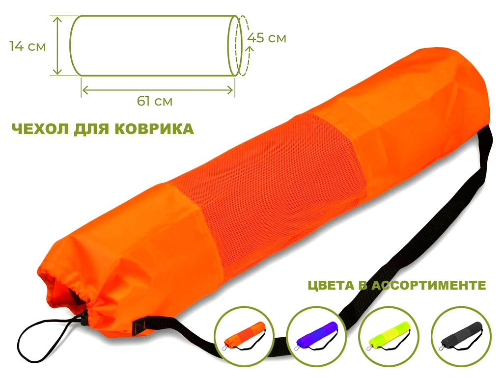 Чехол для коврика, полиэстер. Предназначен для хранения, транспортировки и переноски ковриков для йоги и фитнеса. Диаметр 14 см, длина 66 см.
