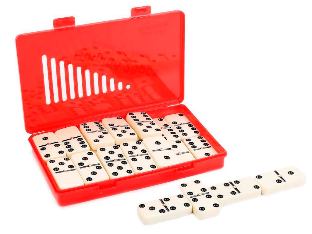 Настольная игра домино существует уже более двух тысяч лет, корни этой игры уходят в Индию и Китай, именно там появились кости в виде пластинок. Сейчас игра в Домино приобрела мировую популярность. Домино большое в пластмассовой коробочке, белое с шариком облегчает перемешивание костяшек на столе. Это настольная игра для всей семьи, потому что разновидностей партий существует множество — от самых лёгких, детских, до сложных, где соревнуются опытные игроки.