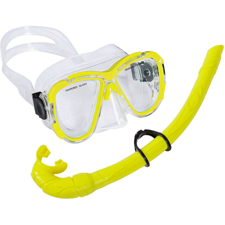 Характеристики: Материал: Оправа: прочный ABS пластик Линзы: прозрачное закаленное стекло (4мм) Тип стекол: 2-х линзовые Обтюратор: гипоалергенный ПВХ Ремешок: ПВХ регулируемый Трубка: с загубником ПВХ (с креплением к маске) Основной цвет: Желтый Произведено в КНР Описание: Маска для плавания изготовлена из гипоаллергенного ПВХ, не имеющего неприятных запахов и вредных испарений. Размер маски легко регулируется за счет крепежных лямок. Классическая маска для дайвинга имеет большой овальный иллюминатор. Маска для ныряния подходит для большинства типов лица. Герметичность маски позволяет нырять на глубину до 10 метров.