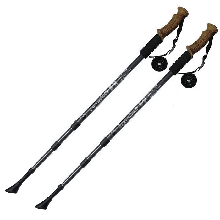 F18439 Палки для скандинавской ходьбы (черные) Количество сегментов: 3Система АнтишокРостовка: 86 –135 смМатериал: 7075 АлюминийФиксатор: Twist lockТемляк: регулируемый ремешокРукоятка: анатомическая, литая пробковаяДлина в собранном состоянии: 65Материал наконечника: вольфрам, резиновый башмачок