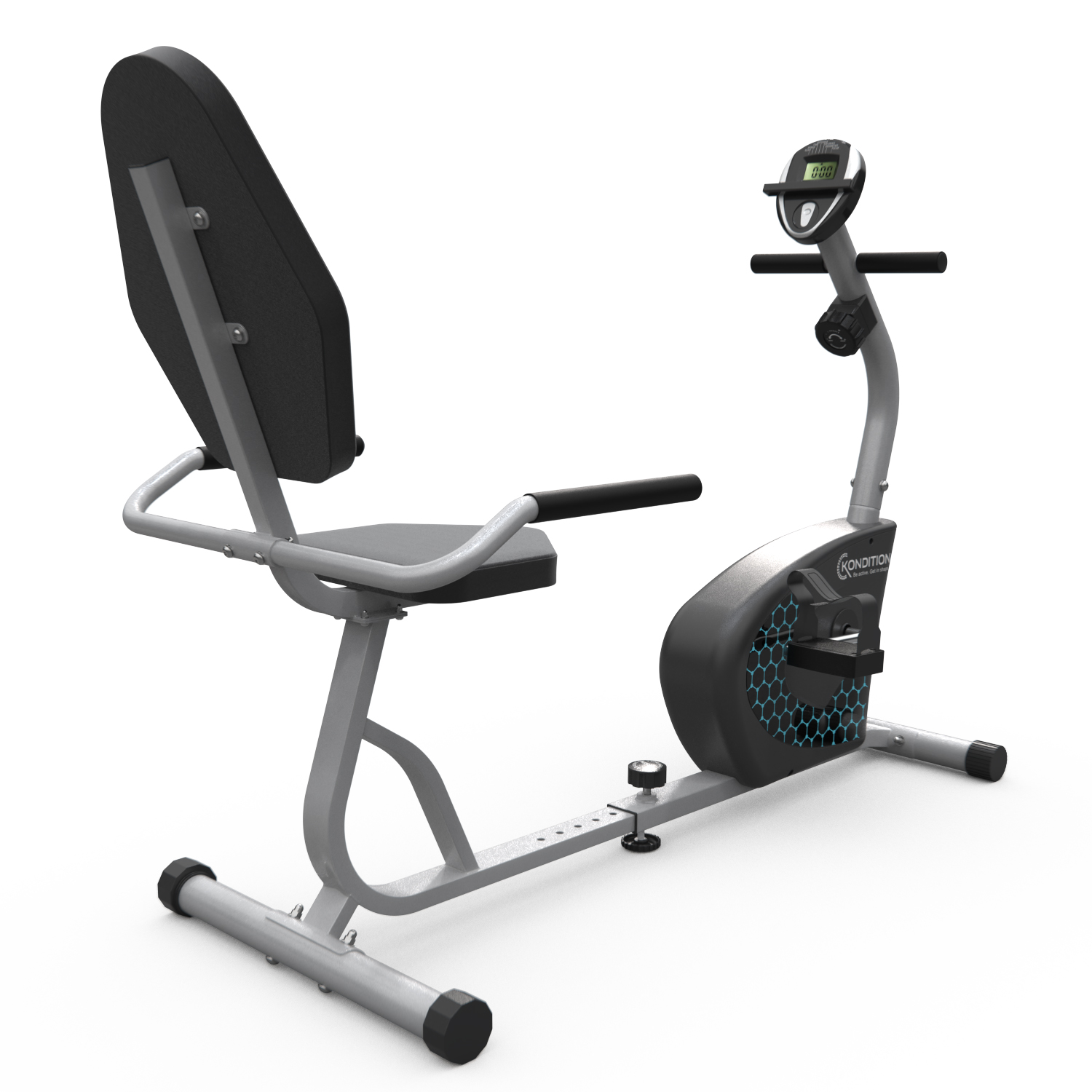Горизонтальный велотренажёр Kondition предназначен для поддержания физической формы и улучшения здоровья. Максимальный вес пользователя 100 кг.