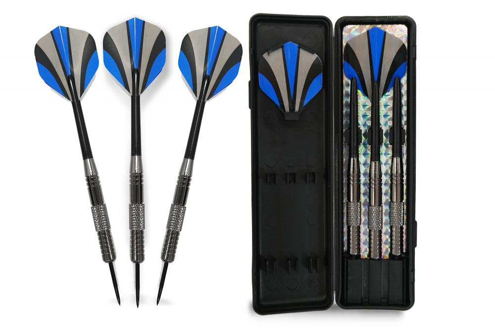 Комплект состоит из 3 баррелей, 3 хвостовиков, 3 оперений и кейса. Разборная конструкция дротиков позволяет заменить его хвостовик и оперение по мере изнашивания оборудования.