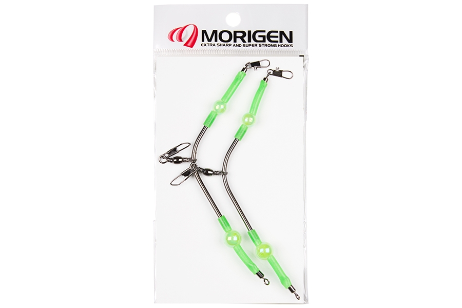 Коромысло Morigen W-24-2 для морских рыболовных монтажей, оснащено зеленой силиконовой трубкой, двумя бусинами с Glow эффектом, двумя карабинами и одним вертлюжным блоком. Может быть использовано как в пресных, так и соленых водоемах.