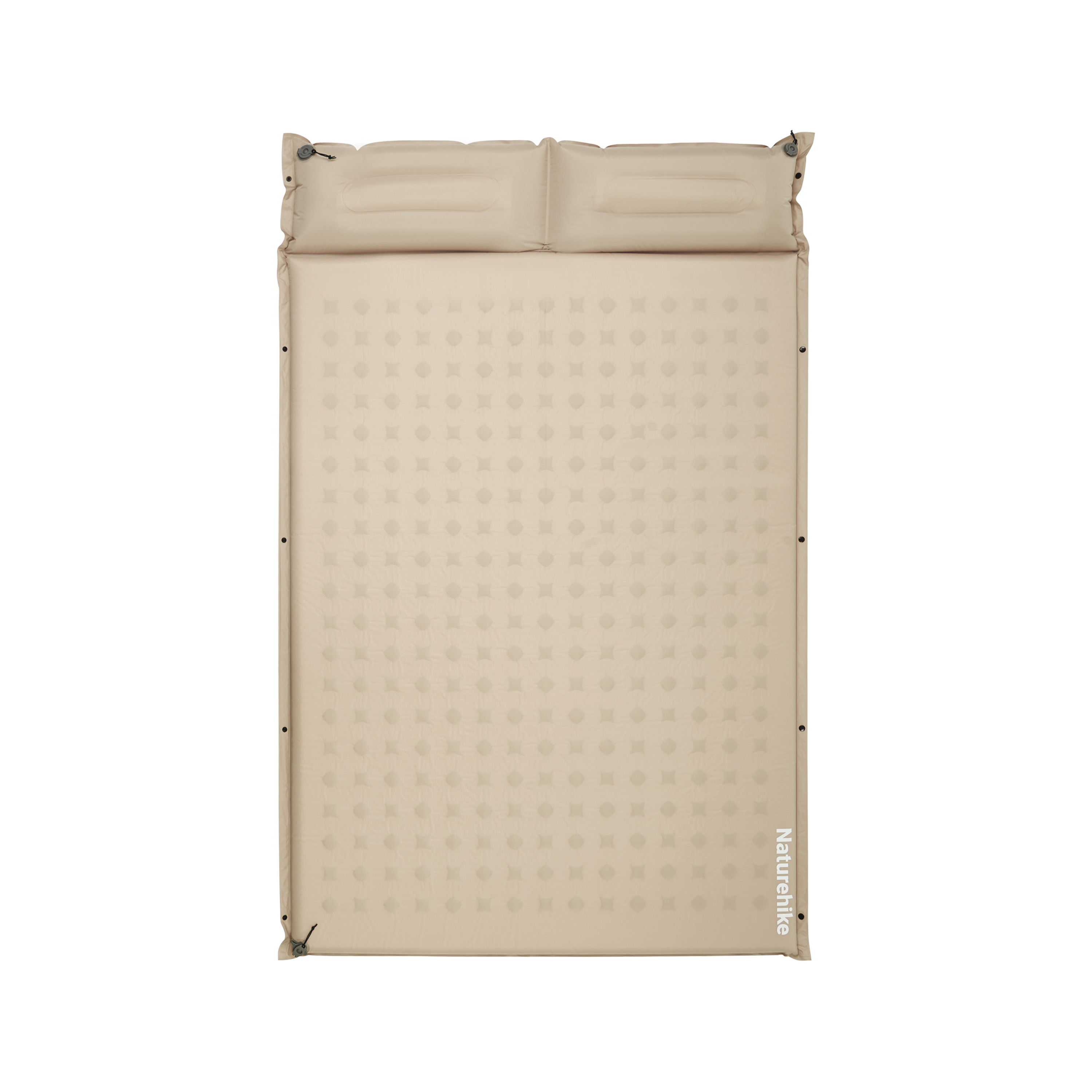 Конструкция выполнена из прочного полиэстера 190T с TPU-покрытием, устойчивого к износу и влаге. Внутренний слой — эластичная вспененная PU-пена (полиуретан) с открытыми ячейками, обеспечивающая автоматическое наполнение воздухом и равномерную поддержку. Такая комбинация материалов делает модель долговечной и устойчивой к влаге. В изголовье коврика встроены подушки для двух человек, они формируются при надувании коврика и образуют слегка приподнятую зону для головы. Эргономичная форма повторяет естественный изгиб шеи и обеспечивает более стабильное положение головы во время сна.