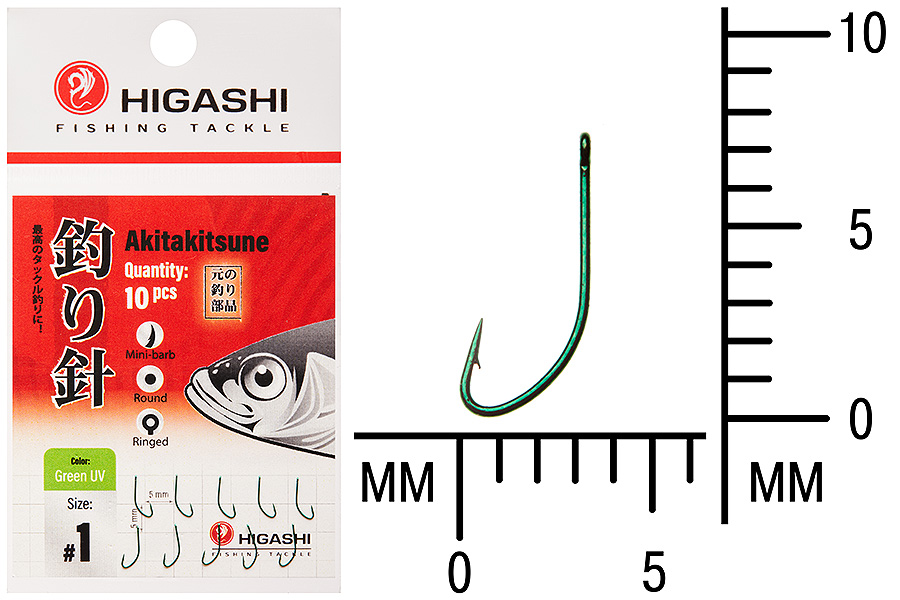 Артикул: Крючок HIGASHI Akitakitsune ringed #1 Green UV