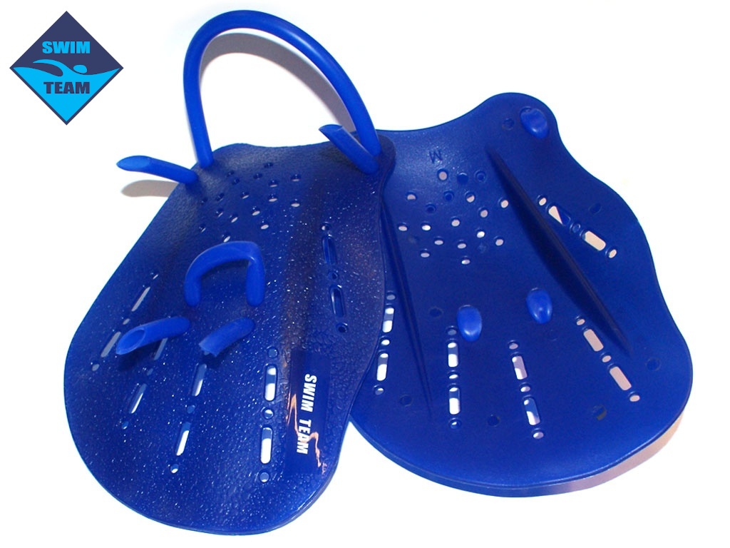 Лопатки для плавания SWIM TEAM. Такие лопатки обладают удобными ремнями, которые легко регулируются, хорошо фиксируя пальцы и запястье. Лопатки отлично подойдут как новичкам во время обучения плаванью, так и профессиональным спортсменам. Современная гидродинамическая форма обеспечит тренировку мышц ладони и рук в целом. Рельефная поверхность не позволит ладони скользить, обеспечивая сцепление с поверхностью лопатки. Лопатки в индивидуальной упаковке с замком и подвесом.