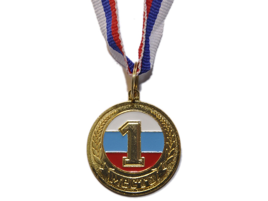 Медаль металлическая с тиснением и цветной эмалью «1 место» золото.