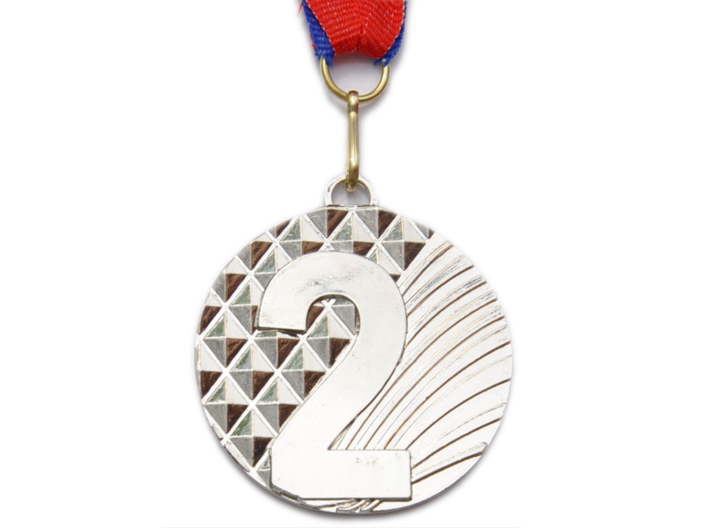 Медаль металлическая с тиснением «2 место» серебро.