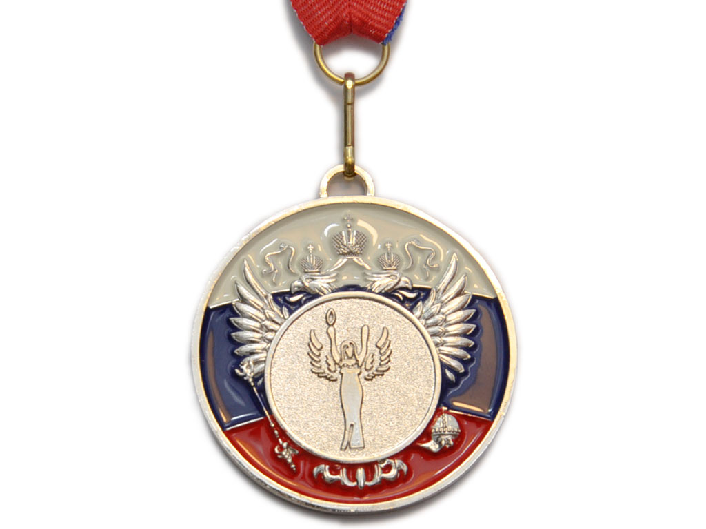 Медаль металлическая с тиснением и цветной эмалью «2 место» серебро.