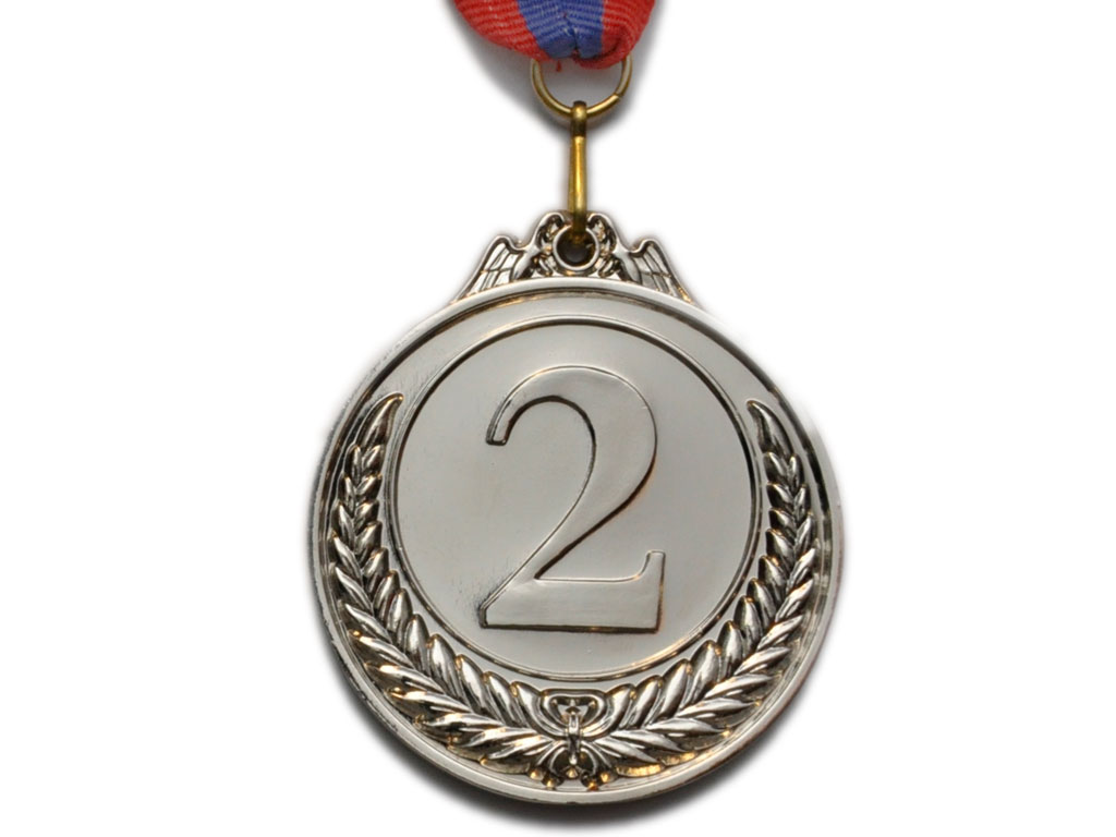 Медаль металлическая с тиснением «2 место» серебро.
