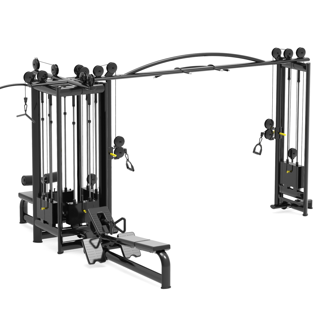 BRONZE GYM MIGHT 63 — это универсальное комплексное решение для тренировки мышц всего тела, сочетающее в себе пять полноценных рабочих зон. Тренажёр рассчитан на интенсивное использование в фитнес-клубах, спортивных центрах и корпоративных залах. Инновационная конструкция, усиленная рама и возможность регулировки ключевых элементов делают станцию адаптируемой под пользователей любого уровня подготовки.