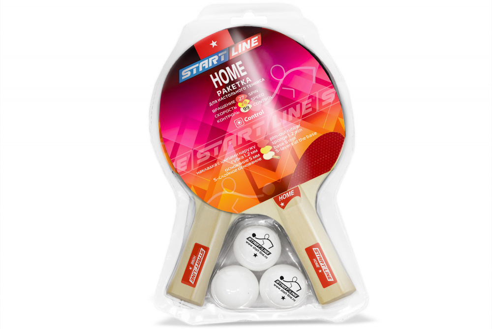 Набор START LINE: 2 Ракетки Home 1 звезда, 3 Мяча, Сетка с креплением, упаковка блистер