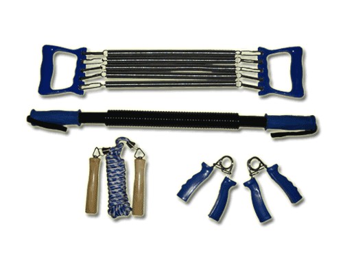Третий предмет эспандер плечевой с регулируемой нагрузкой. Растяжка эспандера не только полезна для здоровья и общего самочувствия, но и помогает укрепить и развить мышцы грудной клетки, рук, спины. Конструкция эспандера разработана таким образом, что можно по своему усмотрению отсоединять элементы тем самым уменьшая нагрузку и присоединить обратно для увеличения нагрузки. Эспандер состоит из пяти съемных пружин и удобных эргономичных ручек.