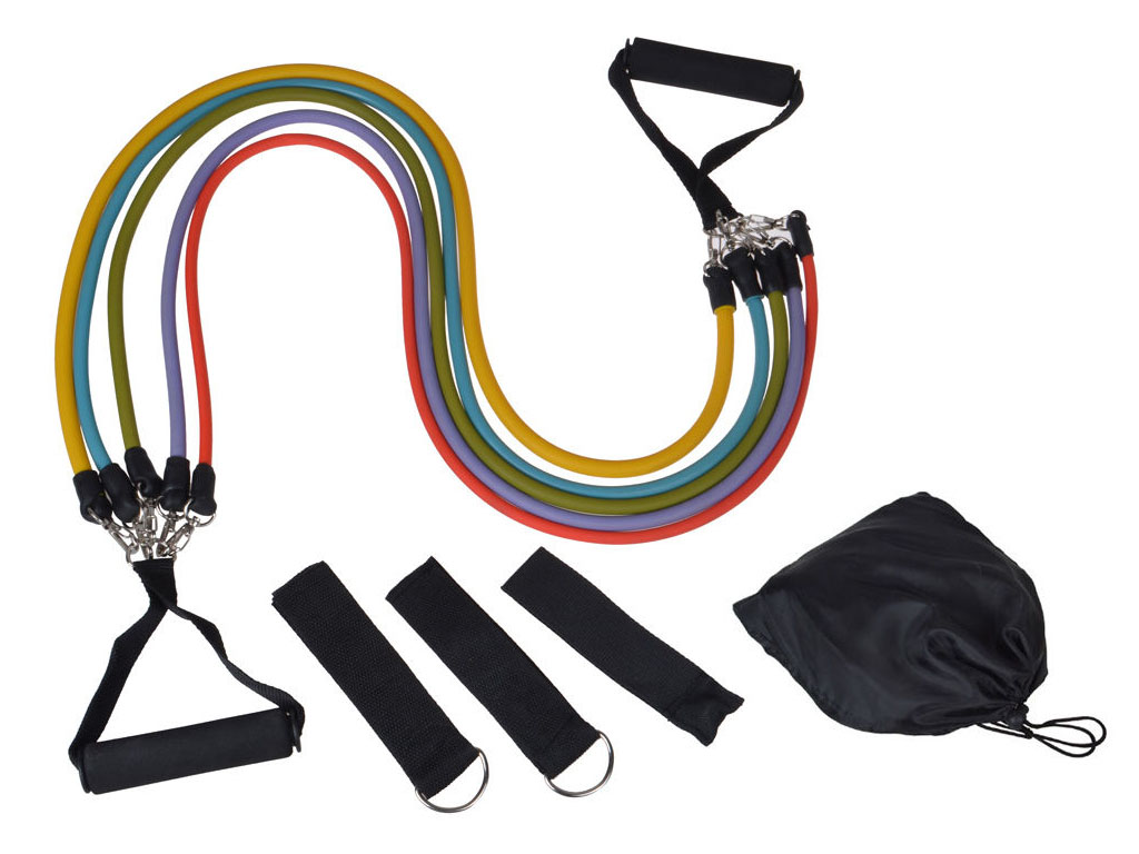 Набор эспандеров универсальный с латексными трубками. С таким эспандером легко можно заниматься дома и он не занимает много места, так же его легко перевозить. Подходит как для новичков, так и для профессиональных спортсменов. Растяжка эспандера не только полезна для здоровья и общего самочувствия, но и помогает укрепить и развить основные мышцы, повышает выносливость тела и улучшает подвижность суставов. Неопреновые ручки мягкие и не скользят в руке, сами ручки вращаются. Нейлоновые стропы прочные и износостойкие. В наборе 5 латексных трубок разного цвета. Каждый цвет означает свою нагрузку.