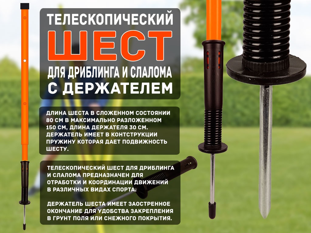 Набор палка телескопическая пластиковая Оранжевая + стойка-штекер на пружин