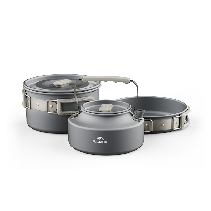 Главное преимущество Naturehike 3 в 1— практичность и компактность. Все элементы продуманы для экономии места: складные ручки складываются вдоль корпуса, а кастрюля, сковорода и чайник компактно помещаются друг в друга. В сложенном виде комплект занимает минимум пространства в рюкзаке или багажнике автомобиля и легко транспортируется в специальном чехле.