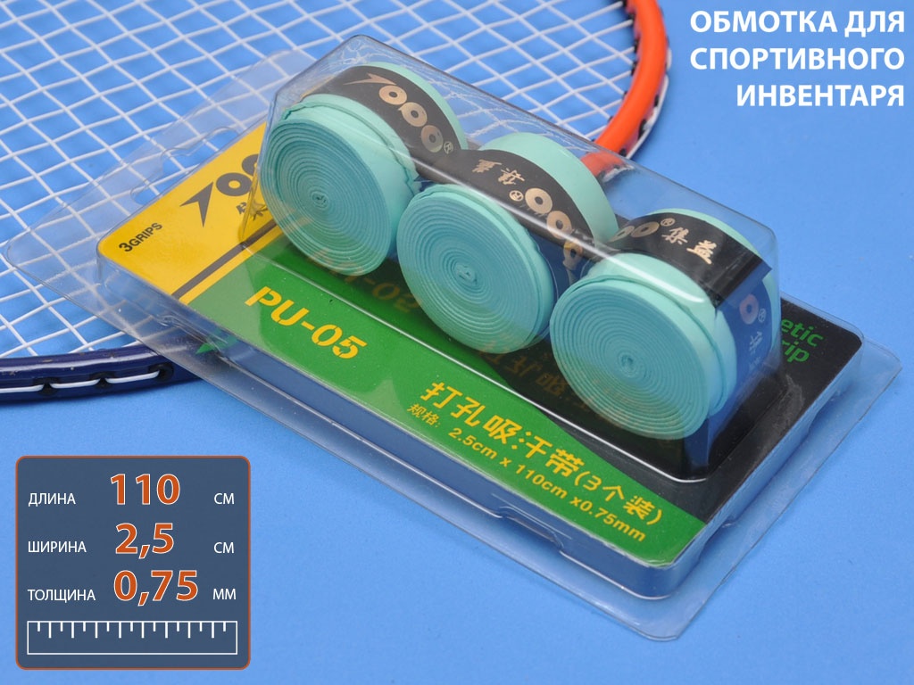 Обмотка спортивная - изготовлена из синтетического материала. Предназначена для намотки на рукоять спортивного инвентаря. Она повышает комфорт во владении рукояткой и предотвращает случайное выскальзывание из рук. Тонкая и мягкая лента обладает отличной впитывающей способностью, при этом незначительно увеличивая диаметр и позволяя отрегулировать ручку для идеального хвата. Яркий цвет ленты позволит вам создать свой уникальный и узнаваемый дизайн ракетки.