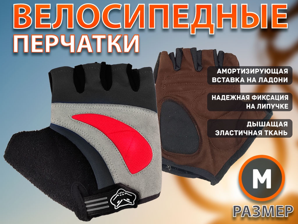 Перчатки для велосипедистов без пальцев. Такие перчатки прекрасно подходят для велопрогулок. Внутренняя часть изготовлена из искусственной замши с мягкими поролоновыми вставками в области более подверженной появлению мозолей. Тыльная сторона перчаток из тонкого трикотажного материала, которые обеспечивают циркуляцию воздуха, и отводят влагу. Специальные липучки позволяют надежно фиксировать перчатки на руках.