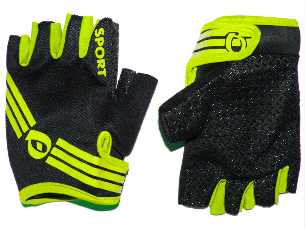 Перчатки для велосипедистов без пальцев. Такие перчатки прекрасно подходят для велопрогулок. Внутренняя часть покрыта антискользящим покрытием, которое обеспечивает надежное сцепление рук с ручками руля у велосипеда. На ладони у перчаток материал более плотный и износостойкий. Тыльная сторона перчаток из тонкого материала, который обеспечивает циркуляцию воздуха, и отводит влагу. Специальные липучки позволяют надежно фиксировать перчатки на руках.
