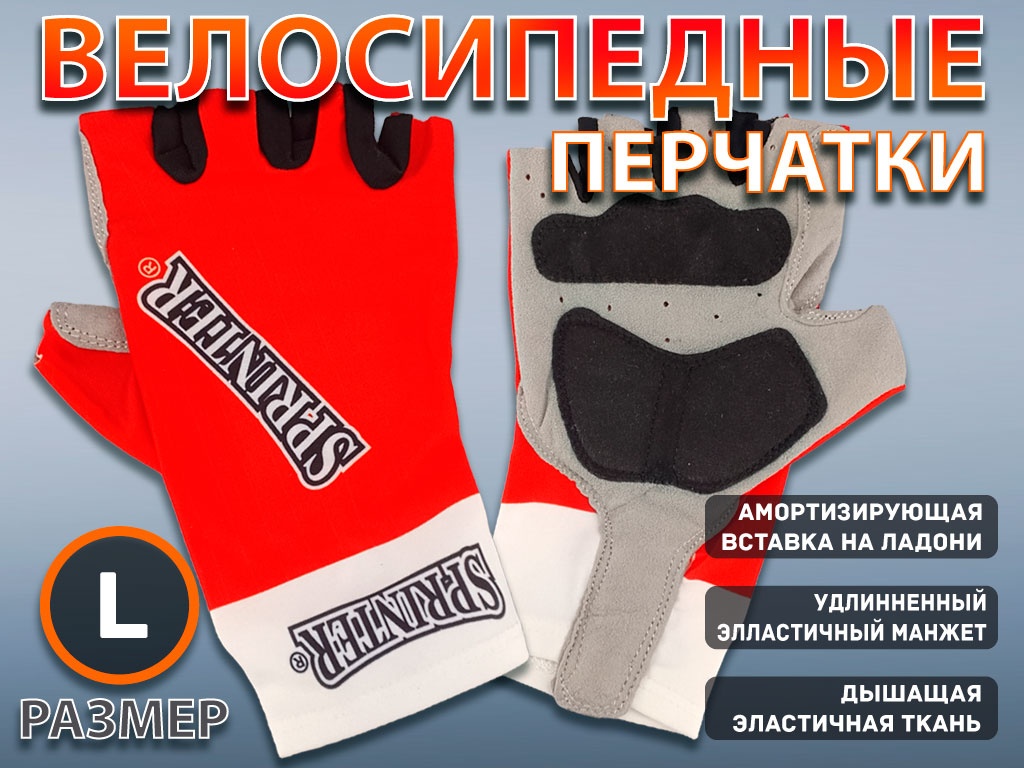 Перчатки велосипедные SPRINTER размер L :98-99 (L-красный) 21237