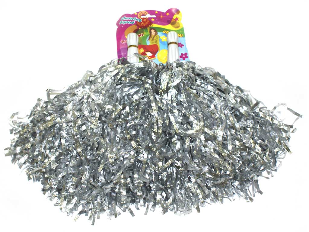Помпоны для черлидинга металлизированные. Цвет серебро. Ручка пластмассовая: длина 10 см, диаметр 2 см. SLB-40СЕ 26328