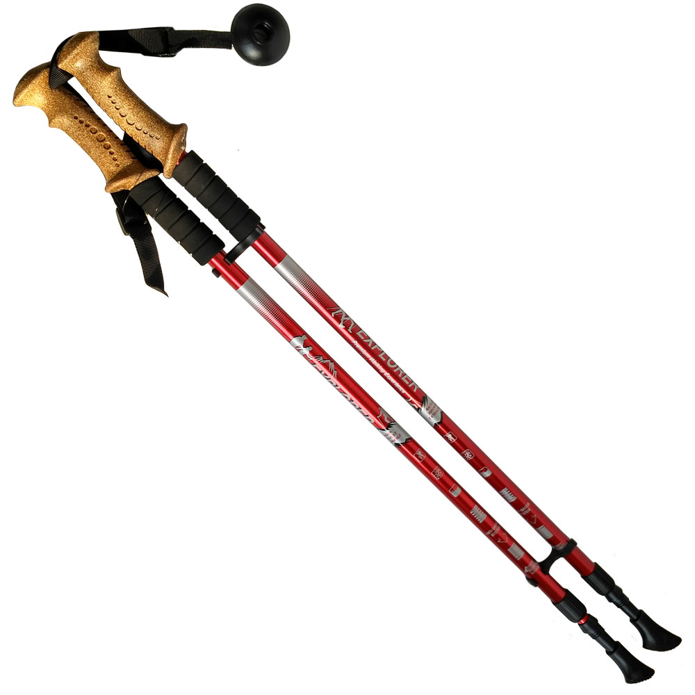 R18142 -PRO Палки для скандинавской ходьбы 2-х секционные телескопические с чехлом (красные) Количество сегментов: 2Система АнтишокРостовка: 86 –135 смМатериал: 7075 Алюминий Вес за пару: 620 гр. Фиксатор: Twist lockТемляк: регулируемый ремешокРукоятка: пластик, пробкаДлина в собранном состоянии: 80Материал наконечника: вольфрам, резиновый башмачокЧехол в комплекте
