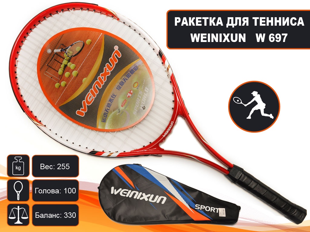 Ракетка для тенниса с V-образным соединением, что позволяет гасить лишние вибрации во время игры. Баланс смещён в сторону головы ракетки, что способствует высокой мощности удара. Такая ракетка отлично подойдет как для новичков, так и для любителей планирующих серьезно заняться тренировками. Ракетки изготовлены из металла с овальной головой. Ручка для ракетки стандартного размера с обмоткой из искусственной кожи и удобно садится в руку за счет своей формы. Маленький вес ракетки обеспечивает манёвренность и высокую скорость во время игры. Вместе с ракеткой в комплекте идет чехол для хранения и транспортировки. Чехол оснащен молнией и удобным ремнем для переноски.