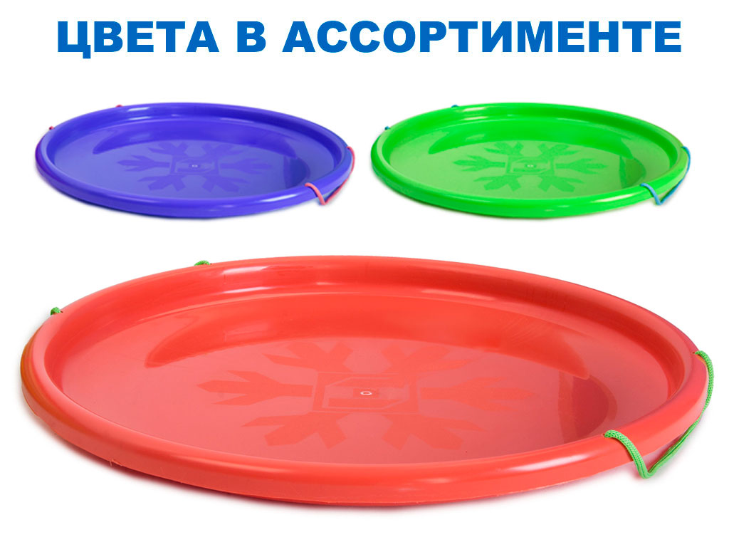 Удобные веревочные ручки по бокам ледянки позволят держаться при спуске с горы.