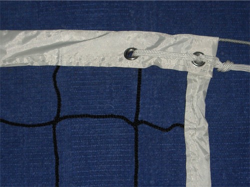 Сетка для волейбола шириной 1 метр и длиной 9,5 метров состоит из черных ячеек в форме квадрата со стороной 10 см. Верхний край сетки обшивает горизонтальной лентой шириной 5 см (сложенный вдвое белый ПВХ-материал, прошит по всей длине). На концах ленты имеются отверстия, через которые пропущен шнур, привязывающий ленту к стойкам для ее натяжения. Внутри ленты находится гибкий трос для крепления сетки к стойкам и натяжения. Внизу сетки находится шнур, пропущенный через ячейки, для крепления ее к стойкам и натяжения. Сетка рекомендована для проведения учебно-тренировочных занятий и соревнований.