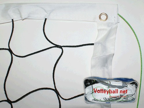 Сетка для волейбола шириной 1 метр и длиной 9,5 метров состоит из черных ячеек в форме квадрата со стороной 10 см. Верхний край сетки обшивает горизонтальной лентой шириной 40 см (сложенный вдвое белый ПВХ-материал, прошит по всей длине). На концах ленты имеются отверстия, через которые пропущен шнур, привязывающий ленту к стойкам для ее натяжения. Внутри ленты находится гибкий трос для крепления сетки к стойкам и натяжения. Сетка рекомендована для проведения учебно-тренировочных занятий.