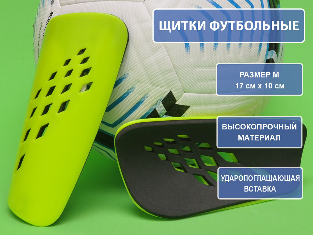 Футбольные щитки для голени это незаменимая часть экипировки для футболиста. Правильная установка защитит игрока от получения травм. Для правильного выполнения своих функций по защите голени щиток должен подходить по размеру. Он не должен скользить вокруг ноги, когда игрок движется, бежит или входит в контакт с другим игроком. Анатомическая форма щитка повторяет форму голени. Щиток должен располагаться на голени не мешая движению колена и лодыжки. Замерять нужно расстояние ниже колена не меньше чем на 5 см. и до сгиба чуть выше лодыжки. Сам футбольный щиток изготовлен из пластика с подложкой из пенорезина. Такой материал прекрасно обеспечивает ароматизацию ударного воздействия и защиту.