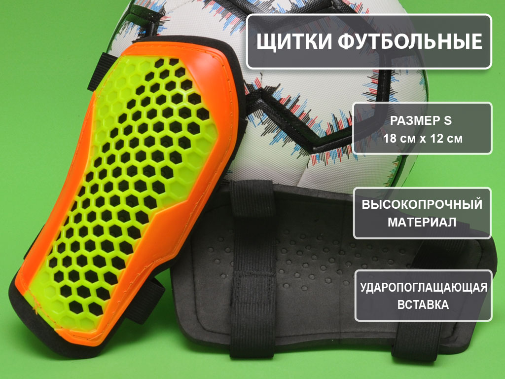 Футбольные щитки для голени это незаменимая часть экипировки для футболиста. Правильная установка защитит игрока от получения травм. Для правильного выполнения своих функций по защите голени щиток должен подходить по размеру. Он не должен скользить вокруг ноги, когда игрок движется, бежит или входит в контакт с другим игроком. Анатомическая форма щитка повторяет форму голени. Щиток должен располагаться на голени не мешая движению колена и лодыжки. Замерять нужно расстояние ниже колена не меньше чем на 5 см. и до сгиба чуть выше лодыжки. Сам футбольный щиток изготовлен из пластика с подложкой из пенорезина. Такой материал прекрасно обеспечивает ароматизацию ударного воздействия и защиту.
