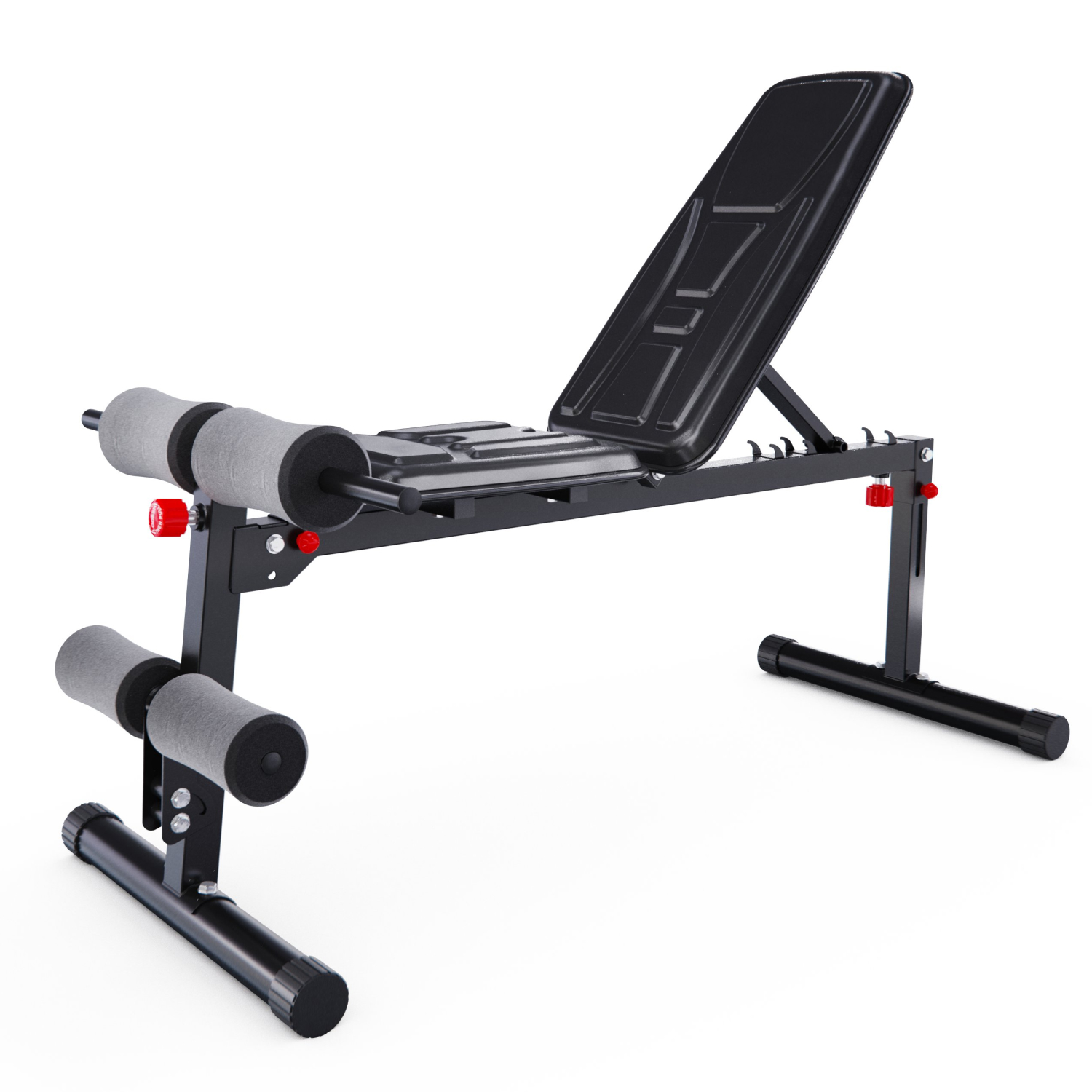 Валики из вспененного материала регулируются на 8 уровней по высоте и обеспечивают надёжную фиксацию во время тренировки. Большие ножки скамьи для фитнеса прорезинены по всей площади, чтобы защитить пол, а противоскользящая конструкция всегда обеспечивает устойчивое положение. Скамья также имеет складную и компактную конструкцию, чтобы сэкономить место в доме.