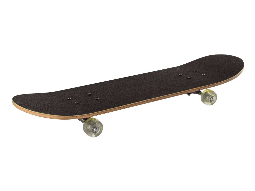 Скейт, поверхность деки которого покрыта специальной износостойкой шкуркой - гриптейпом (griptape), она обеспечивает надежное сцепление с подошвой. На оборотной стороне деки нанесён принт. Слои клена, из которого выполнена дека, плотно склеены и спрессованы между собой, часть из них продольные, часть поперечные, такая конструкция обеспечивает необходимую жесткость, гибкость и устойчивость к повышенным нагрузкам при сравнительно небольшом весе.