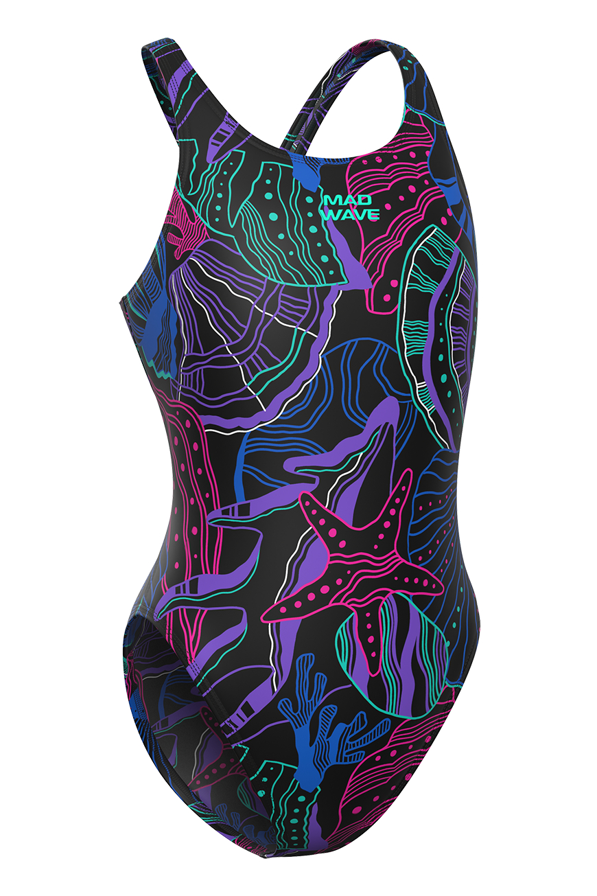 Высокий вырез бедра и открытая спина обеспечивает свободу рук и ощущение легкости в воде. Благодаря подкладке купальник не просвечивает и создает легкий корректирующий эффект.