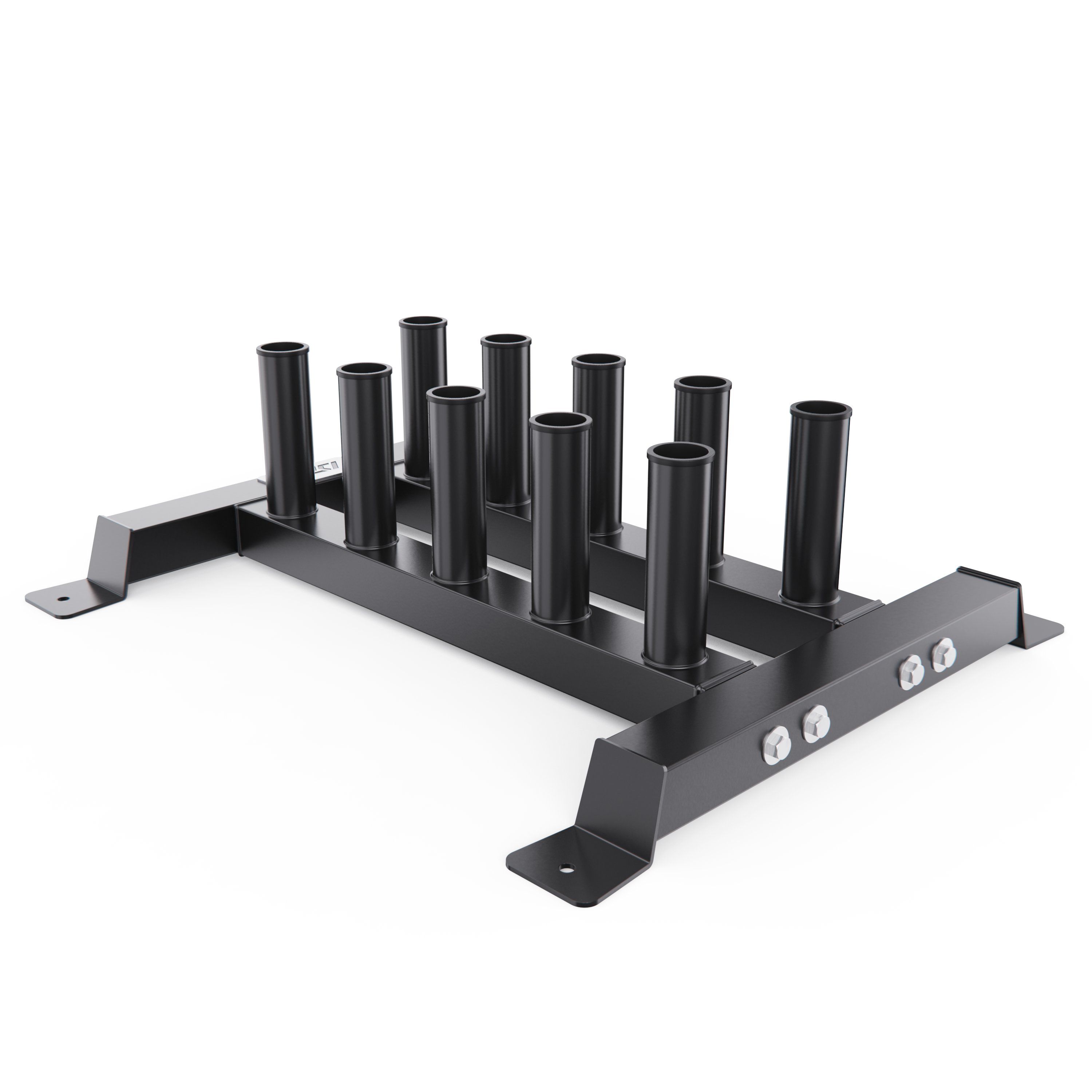 Диаметр посадочных труб составляет 50 мм, что соответствует стандарту олимпийских грифов. Стойка выдерживает максимальную нагрузку до 250 кг, обеспечивая безопасное хранение тяжелых спортивных снарядов.