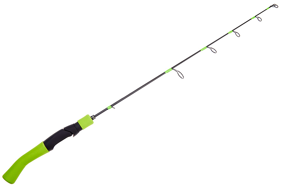 Ярко-зеленый цвет рукоятки делает зимнюю удочку хорошо заметной на снегу и льду.