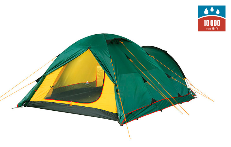 Тент палатки выполнен из прочной, устойчивой к истиранию и разрушению ультрафиолетом полиэстеровой ткани Polyester 190T PU с многослойным полиуретановым покрытием c внутренней стороны. Данное покрытие гарантирует водонепроницаемость более 10 000 мм водяного столба (давление воды при обычном дожде не превышает 1500-2000 мм) для новой палатки и не менее 4 000 мм для палатки, используемой в течение нескольких лет. Для увеличения водоотталкивающих свойств внешняя сторона тента обработана специальной пропиткой Water Repellent (водоотталкивающая пропитка). Также ткань пропитана составом, задерживающим распространения огня (в месте падения искры ткань может оплавиться, но не произойдет общее возгорание палатки, что очень важно с точки зрения безопасности).
