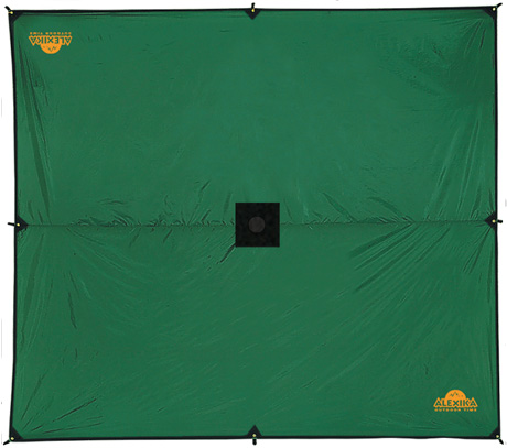•Середина тента усилена квадратом прочной ткани для установки подпорки в центре, с другой стороны усиливающего квадрата вшита оттяжка для подвешивания центра тента на растяжках.