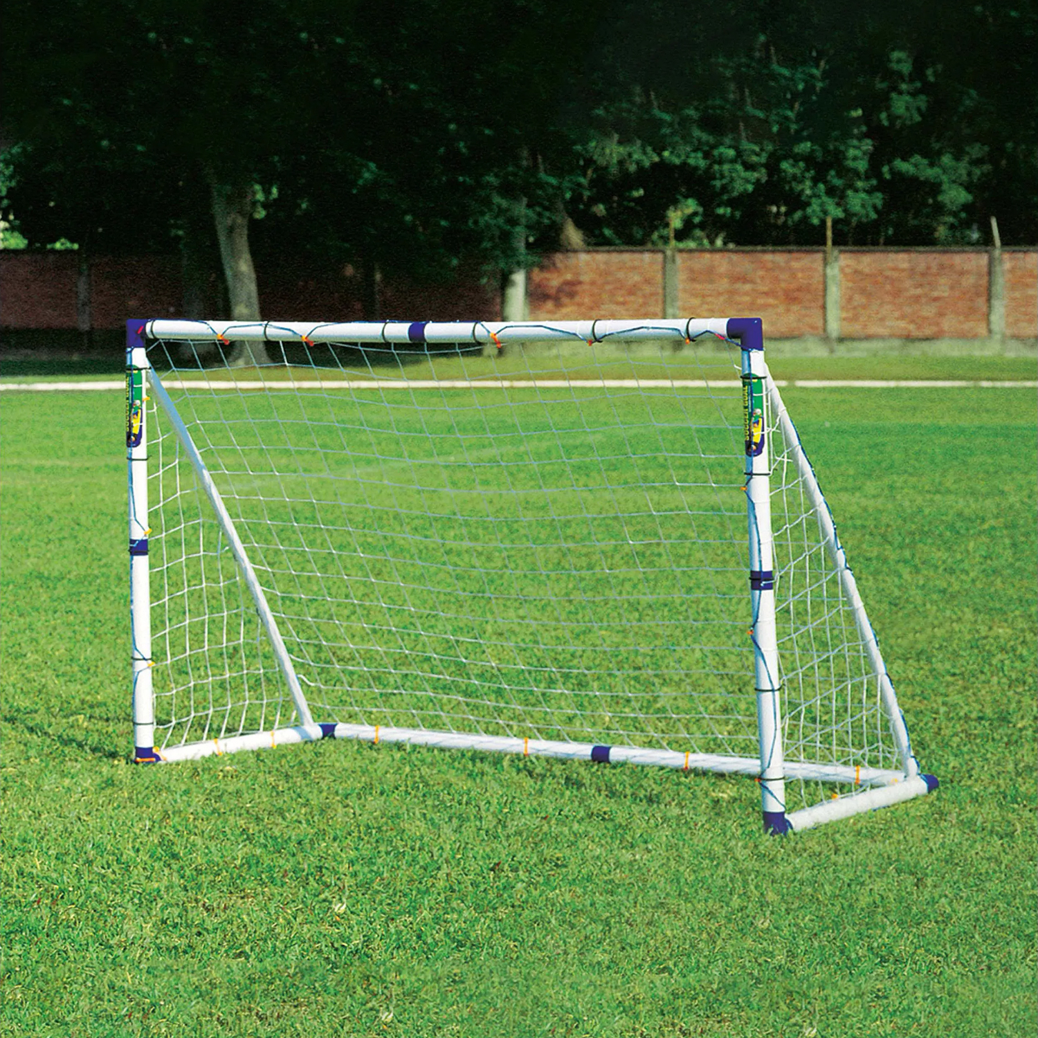 Размеры ворот (183 х 130 х 96 см) делают их идеальными как для детей, так и взрослых. Они изготовлены из ПВХ-труб диаметром 53 мм с защитой от ультрафиолетового излучения, которая прошла необходимые тесты в ЕС на отсутствие фталатов. Фитинги для соединения труб сделаны из усиленного на 40% полипропилена для дополнительной прочности.